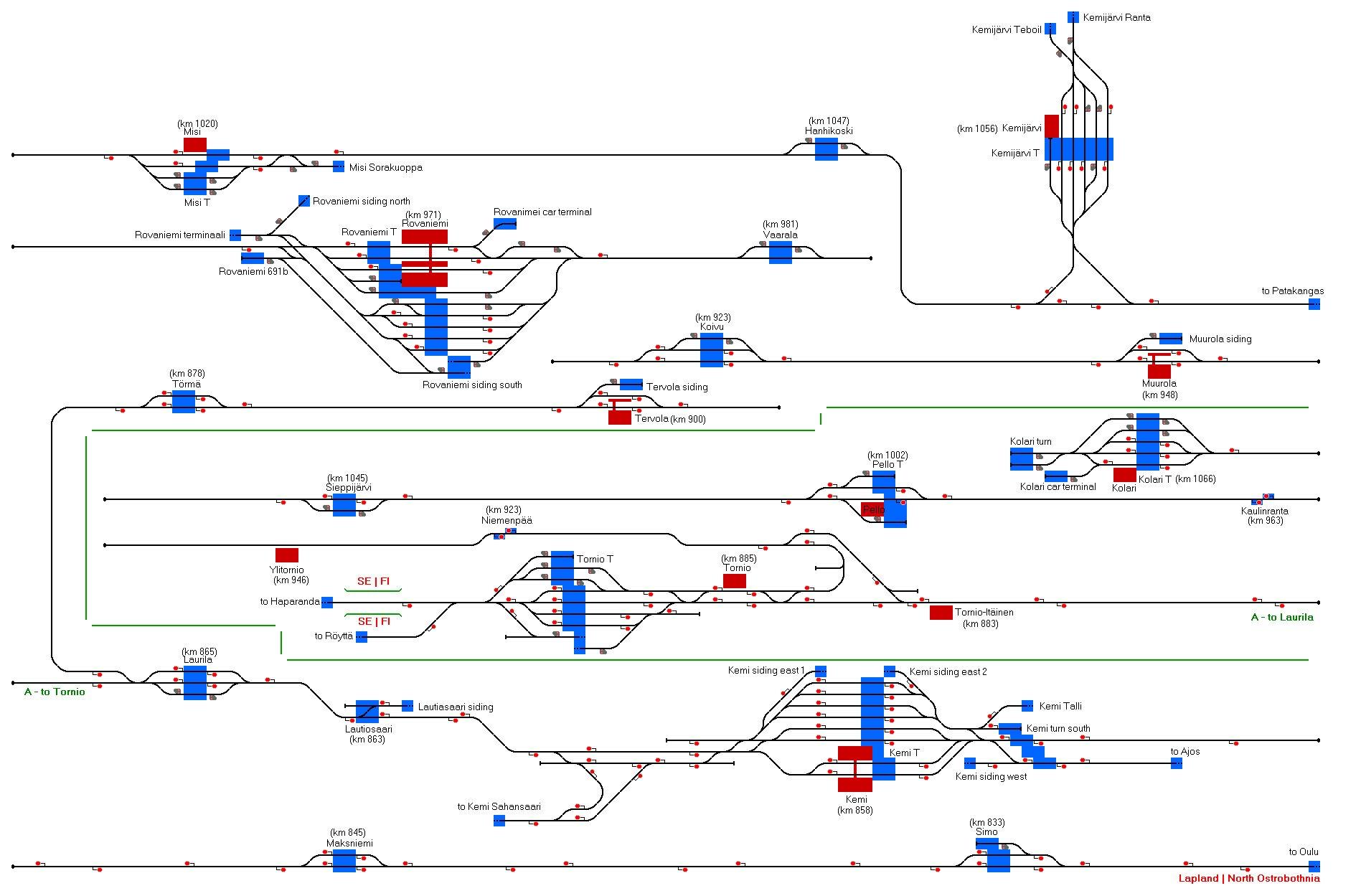 Welcome to the North of Finland. This map represents the complete railway network of Finnish Lapland.